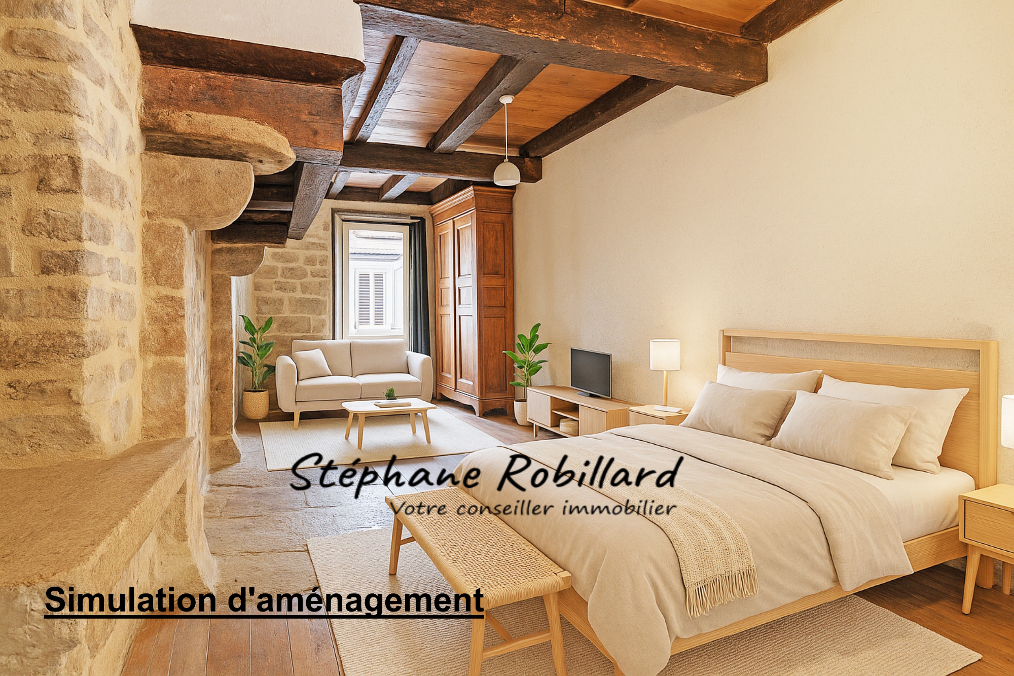 - 2 grandes chambres + 1 bureau et salle de bain à l’étage