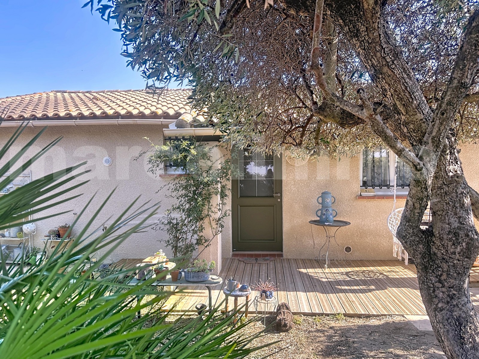 À l’extérieur, vous profitez d’un jardin agréable, agrémenté d’un bel olivier, idéal pour savourer les beaux jours en toute tranquillité.