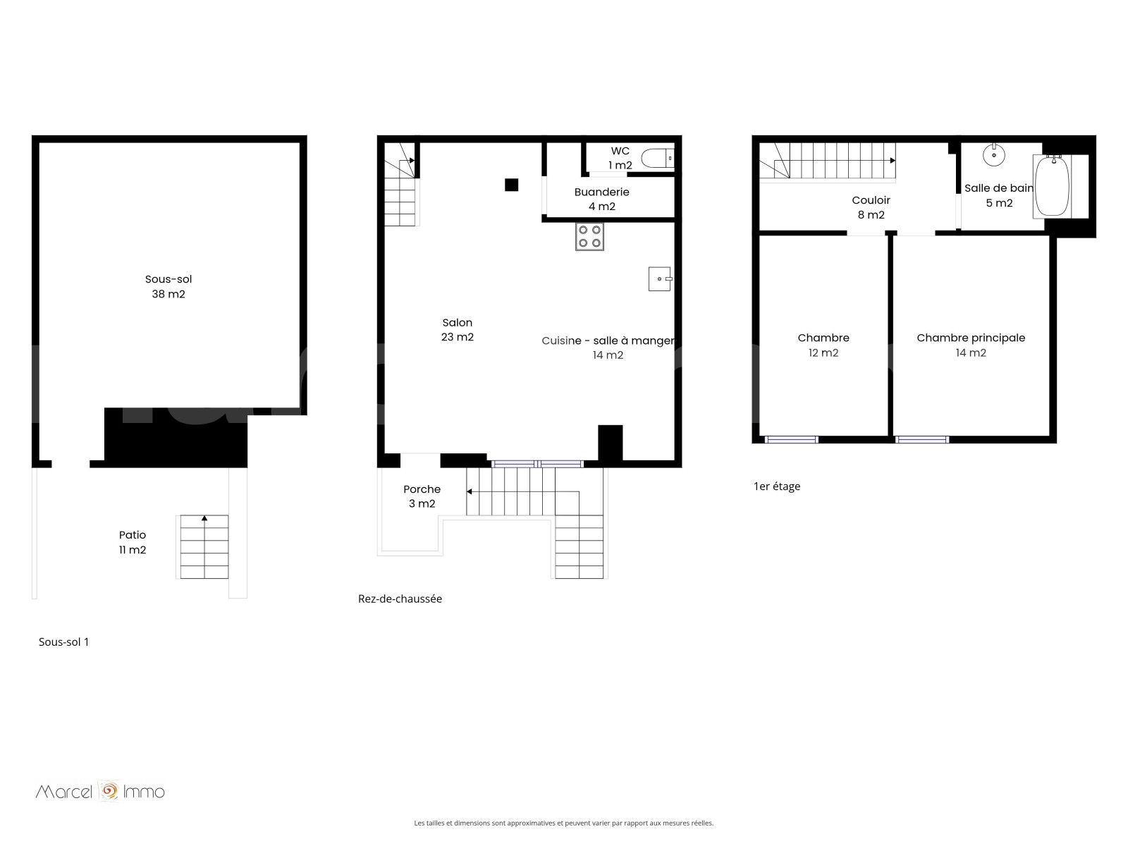 D’une surface habitable d’environ 72 m², elle se compose :